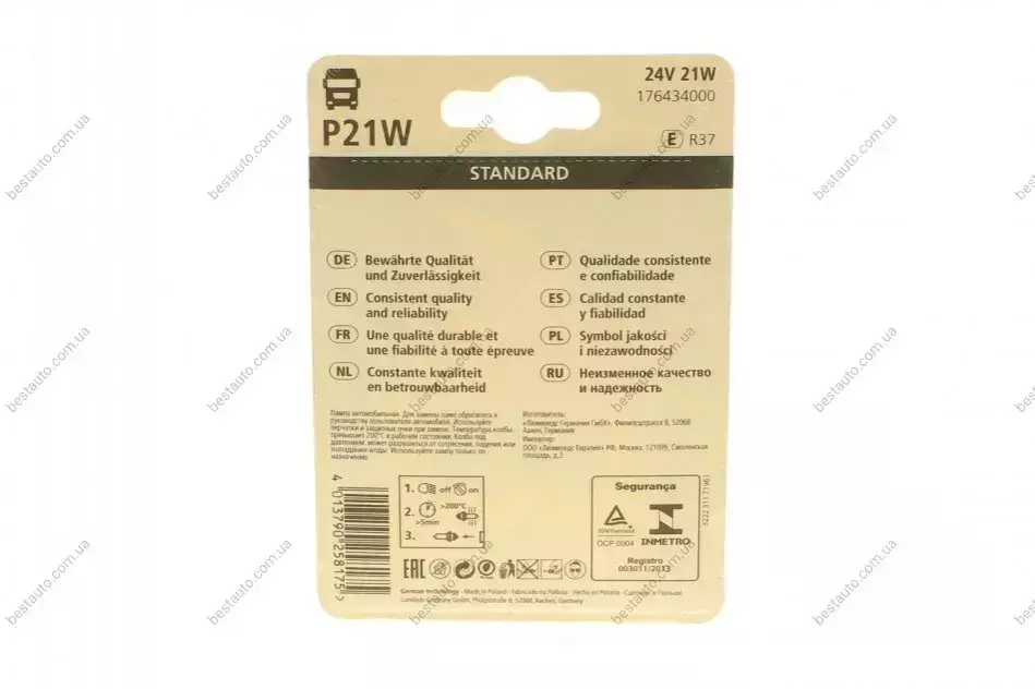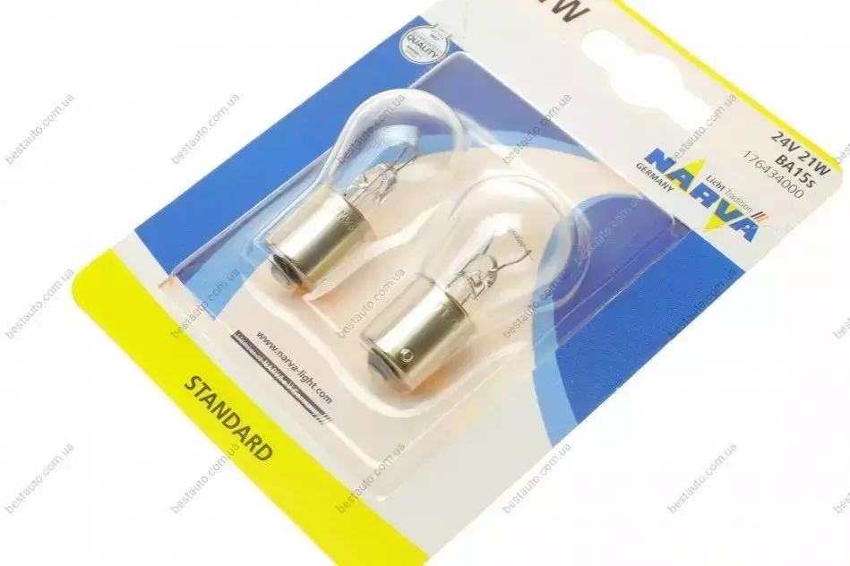 Автолампа P21W 24V 21W BA15s Standard (блістер/к-кт 2 шт) NARVA 176434000