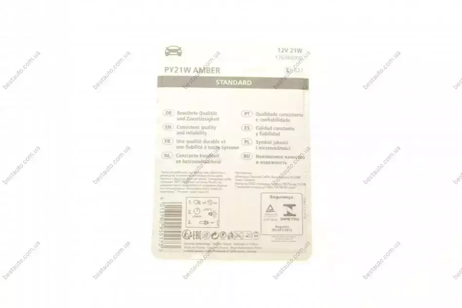 Автолампа PY21W 12V 21W BAU15s Standard (жовта) (блістер/к-кт 2 шт.) NARVA 176384000