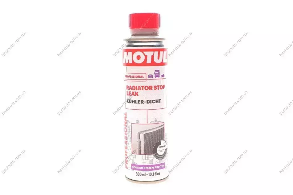 MOTUL RADIATOR STOP LEAK спеціально розроблений для використання в бензинових двигунах і дизелях, атмосферних чи з турбонаддувом, з каталізаторами чи без них, в двигунах, які працюють на всіх видах палива. MOTUL RADIATOR STOP LEAK використовується для герметизації протікань радіатору та теплообмінників, водяних насосів, термостатів, в місцях з’єднання та пошкодження шлангів. Застосовується в усіх типах закритих систем рідинного охолодження легкових автомобілів, комерційної техніки … та промислових теплообмінниках. Використовується в цілях ремонту системи і для профілактики. Додаток сумісний з усіма видами охолоджуючих рідин (неорганічними, гібридними, Lobrid & OAT). Додаток забезпечує мащення під час процесу герметизації системи охолодження.