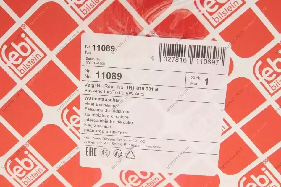 Радіатор пічки VW Caddy II/Golf I-IV 1.4-1.9 TDI 95-02 FEBI BILSTEIN 11089